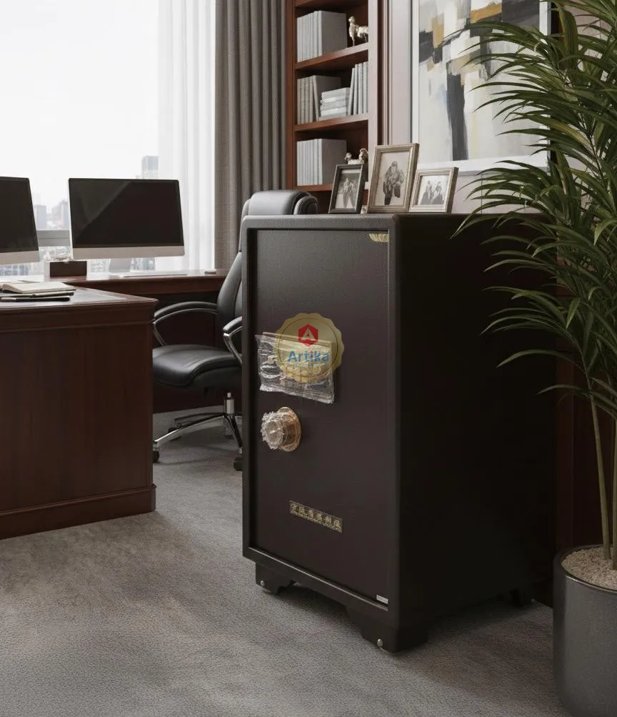 خزنة مكتبية فولاذية بنظام قفل رقمي ولمسات ذهبية