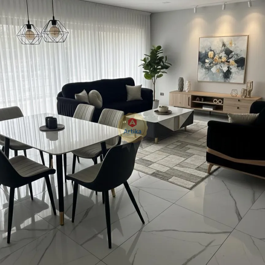يتميز هذا الطقم بتصميم مبتكر يدمج بين الخطوط الانسيابية والفخامة، حيث تبرز الكنب الرئيسية بلون بيج فاتح مع تنجيد كابيتونيه (Deep Tufting) فريد يمتد على الجوانب الخارجية المائلة. يضيف الإطار الخشبي النحيف الممتد على طول الذراع والقاعدة لمسة طبيعية دافئة، بينما توفر الوسائد العريضة راحة فائقة. تكتمل المجموعة بمقاعد مخملية بظلال البني الداكن ذات ظهر مرتفع ومنحنٍ لتوفير تباين لوني وبصري أنيق.